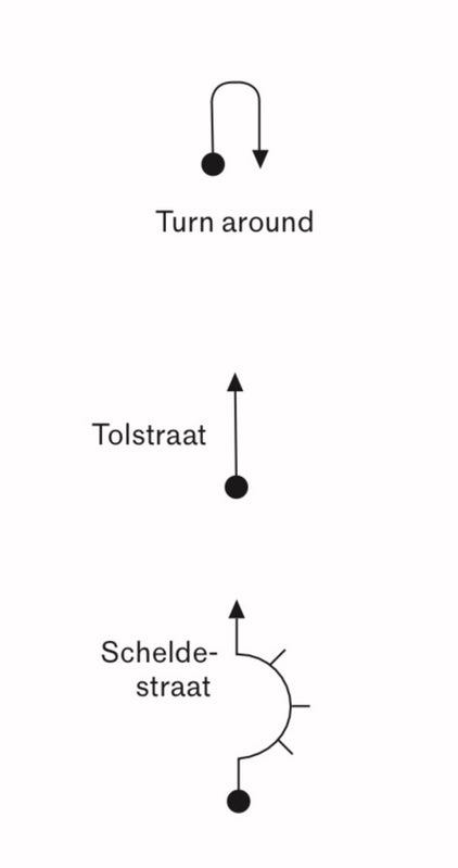 Start on the Vleeshouwerstraat, you pass a street on your right and you keep walking straight ahead on the Vleeshouwerstraat.